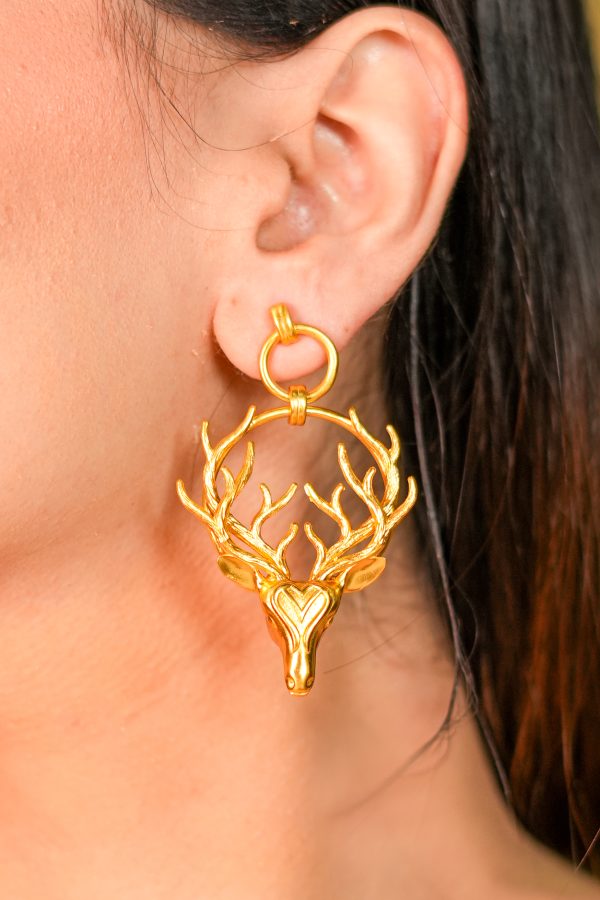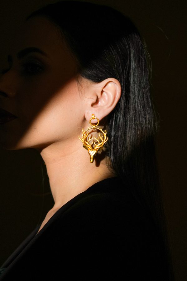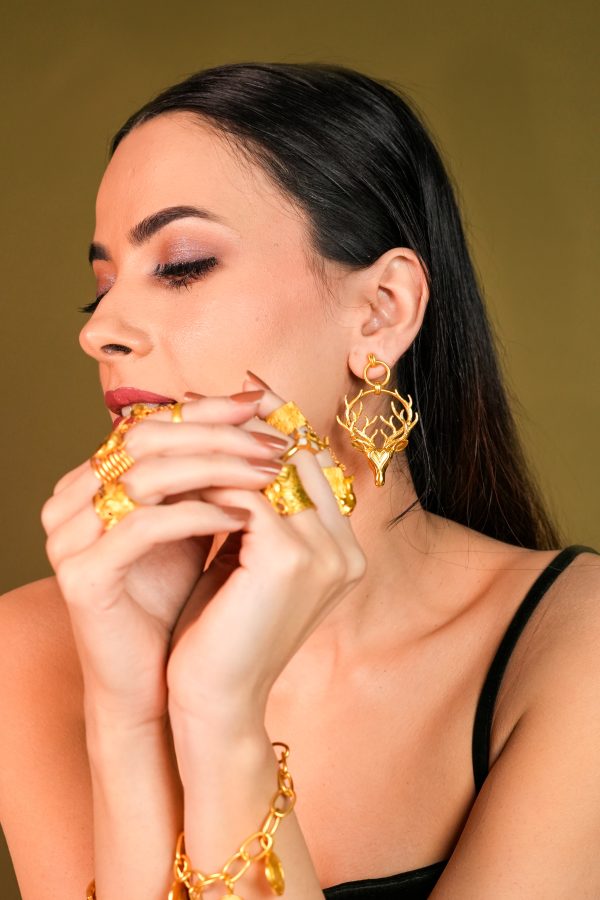 Wild yet poised, the Antler Bloom Earrings embody a quiet strength. Featuring an intricately sculpted stag head framed by a wreath of antlers, this piece feels both grounded and elevated—an ode to nature’s raw elegance and regal presence.