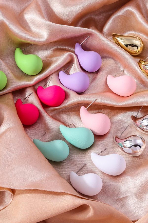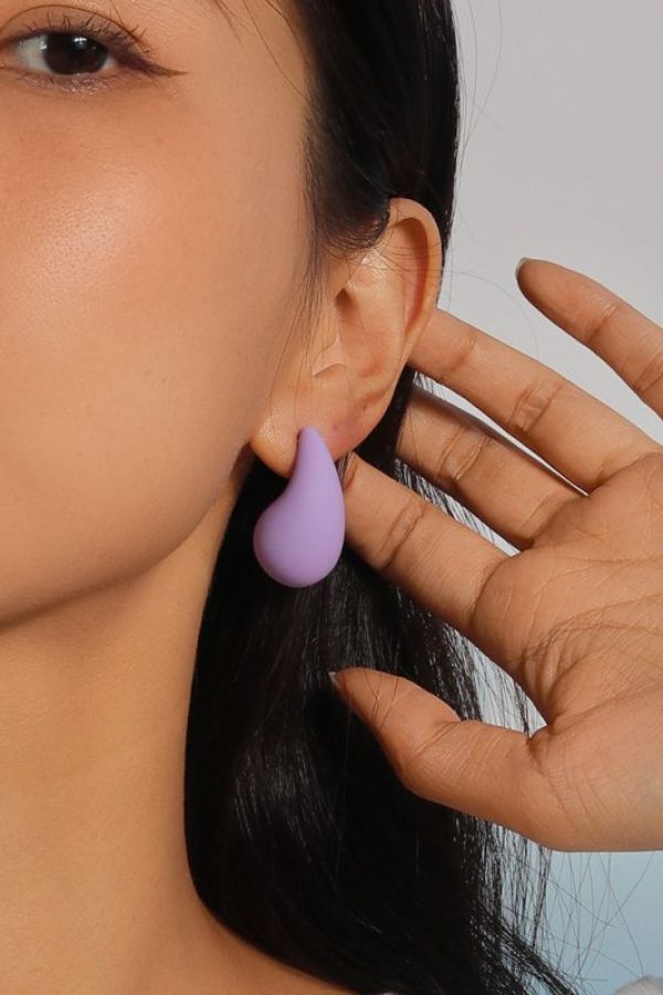 The Dewdrop Pop Studs feature a simple teardrop shape in matte acrylic. They’re lightweight, easy to wear, and add a clean pop of colour to any outfit.