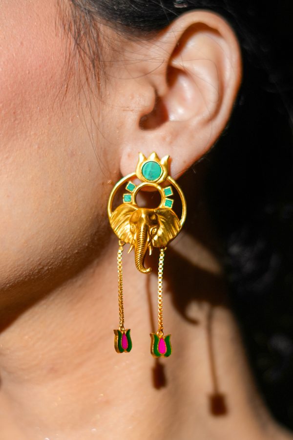 A blend of strength and serenity, the Lotus Trunk Earrings feature a proud elephant crowned with lotus and green enamel details – rooted in heritage, styled for now.