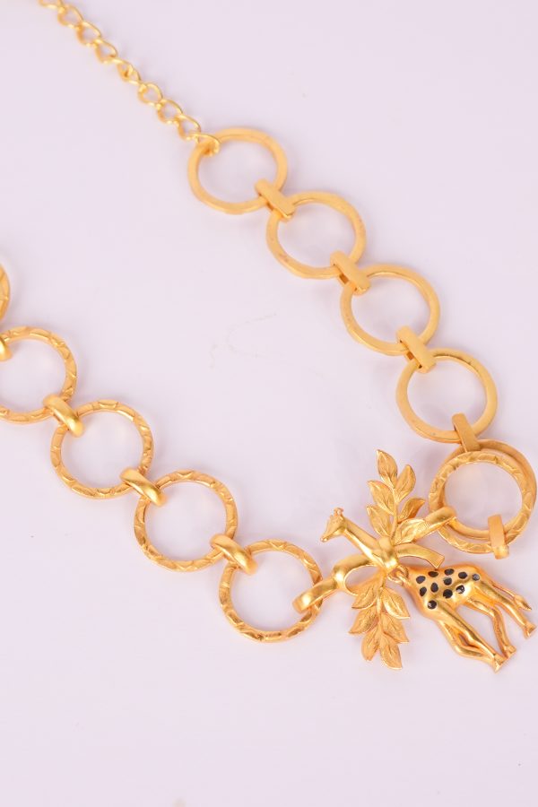 Bold, wild, and full of character — this chunky gold choker brings the savanna to your neckline with a graceful giraffe charm and leafy motif at its heart.