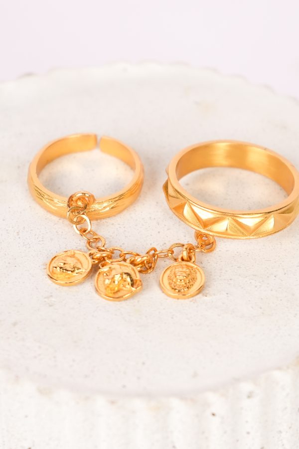 The Tethered Totem ring is both playful and powerful — a piece made for hands that tell stories. Designed to be worn stacked on one finger, the two rings are linked by a dainty chain that sways with movement, its animal charms shifting like thoughts in motion. Crafted in a radiant 18k gold-plated finish, it’s the kind of everyday magic that feels intimate, personal, and quietly bold.
