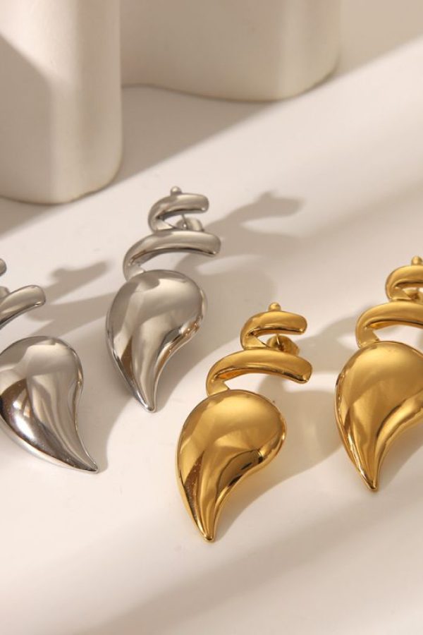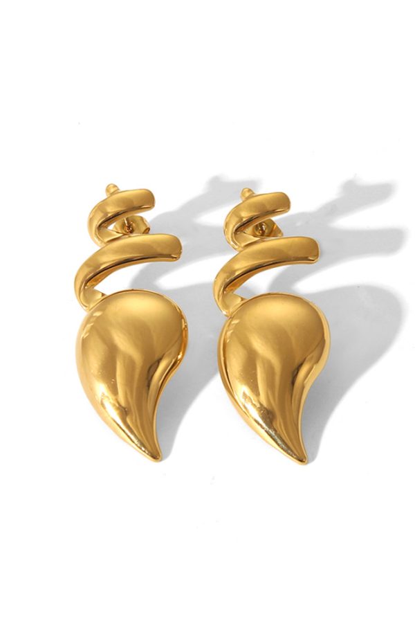 Crafted with 18k gold plating, these earrings blend fluid shapes with a bold design. The twisted upper section adds a unique dimension, while the drop detail keeps the look elegant. Ideal for styling with sleek outfits or adding interest to minimal looks. Lightweight and comfortable for extended wear.